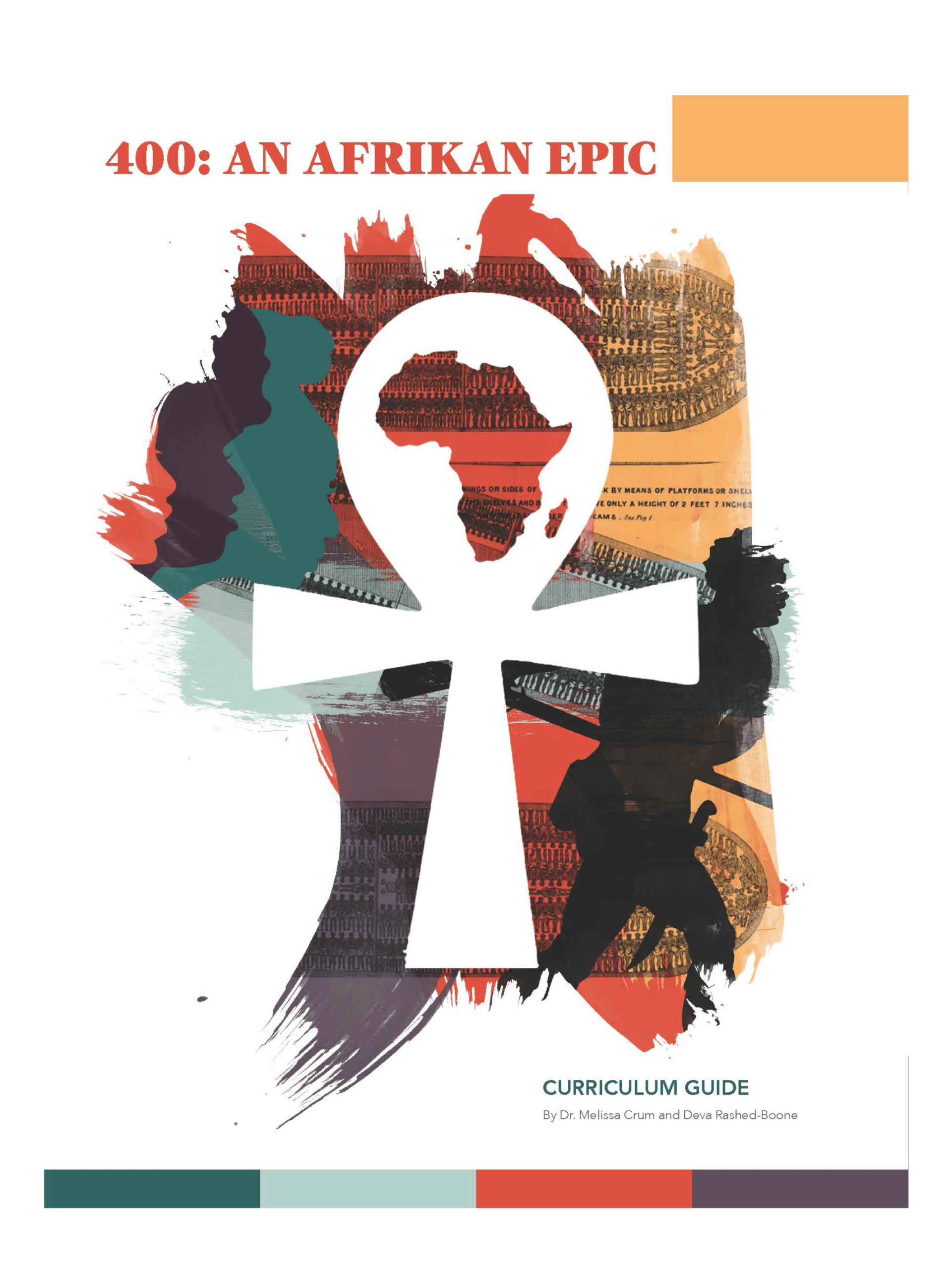 Learn about the resilience, brilliance, strength, genius, and creativity of Africans and African descendants through a nearly 90-page full color curriculum guide. Inspired by the arrival of the first Africans in Virginia four centuries ago in 1619, composer and musician Dr. Mark Lomax II highlights African history and reasserts African humanity through "400: An Afrikan Epic," a twelve-album cycle released in 2019. To accompany this ambitious music project, the "400: An Afrikan Epic Curriculum Guide" brings together socio-political and spiritual aspects of art, music, and race to encourage high school and college students to think critically about identity, systemic oppression, and culture.